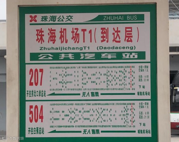 乘坐前往拱北口岸总站方向的207路公交车或前往白蕉总站方向的504路公交车。