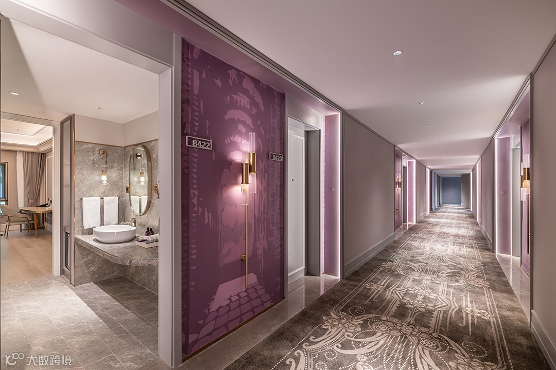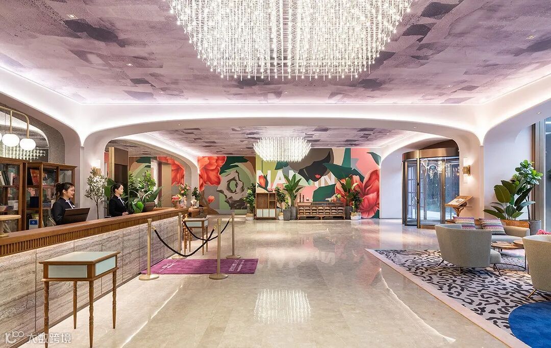 大堂设计以南京名胜为背景,汲取南京历史人文的精髓,花中之魁的南京市花:梅花,虚实相生,空间通透,既彰历史之厚重,又显当今之繁华,散发南京特有情怀。