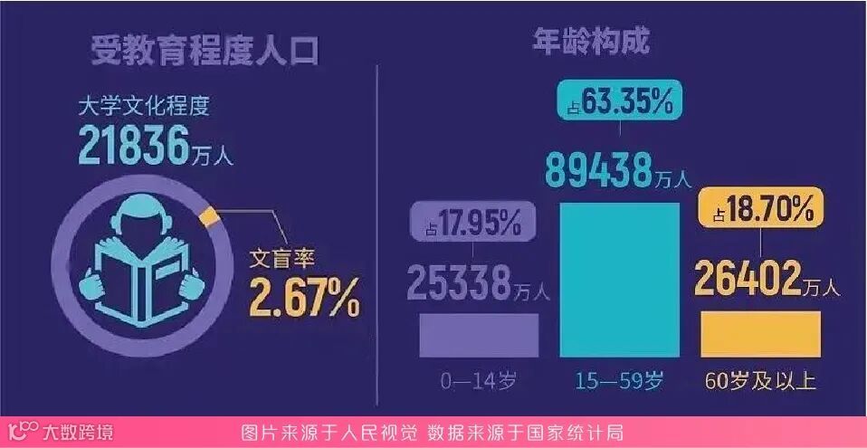 根据此次七普报告显示,全国拥有大学文化程度人数超2亿人次(包含统招、自考等众多考试形式),15-59岁人口有8.94亿人。也就是说,在15-59岁的人群里,每4人中,就有1名具有大学文化程度的人。