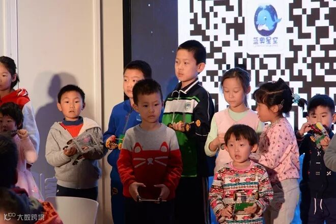 小朋友上台展示在蓝奥星空创意分享会制作的模型
