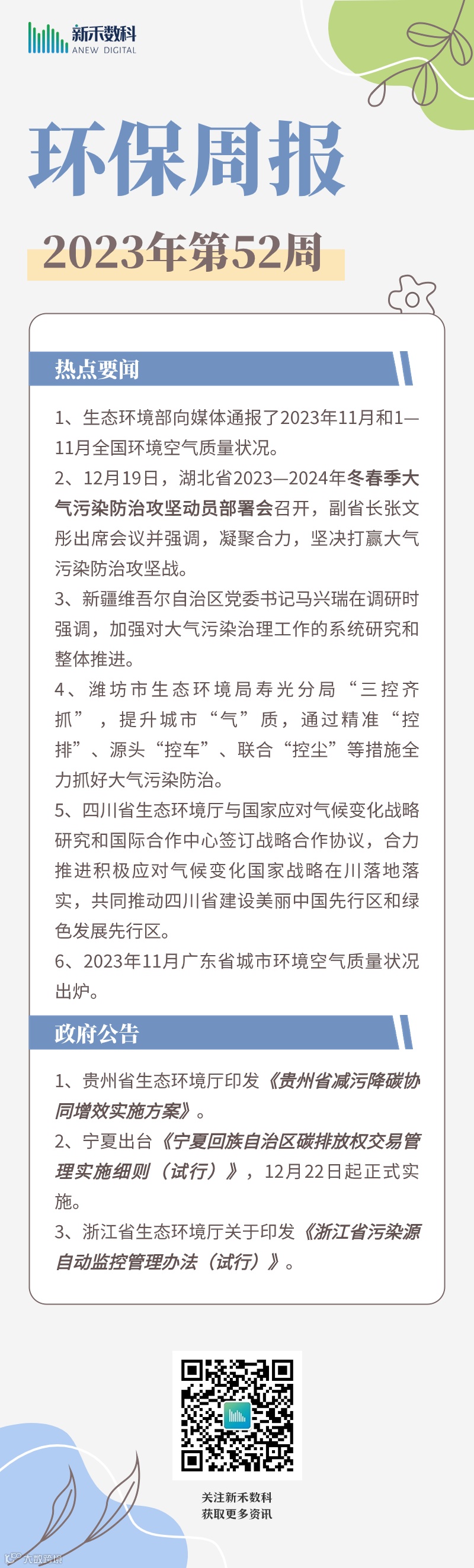 2023年第52周环保周报