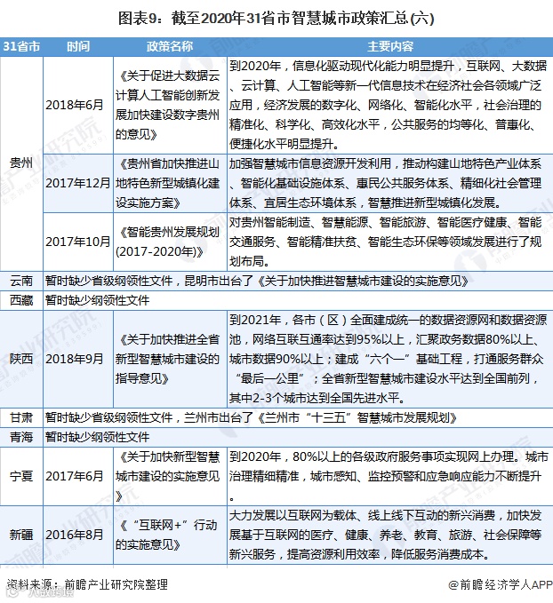 31省市智慧城市区域分布情况