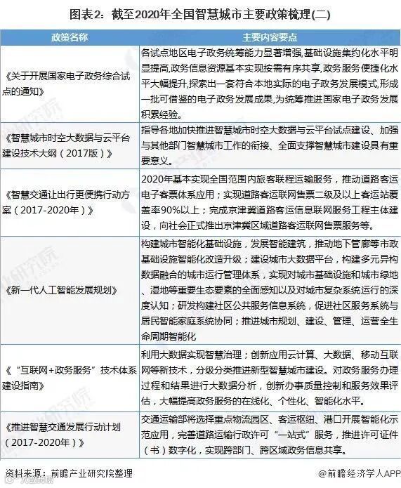 从国家层面来看,进入“十三五”时期以来,我国智慧城市政策密集发布,主要推进电子政务、智慧交通、大数据与云计算的发展,同时完善智慧城市评价指标体系。