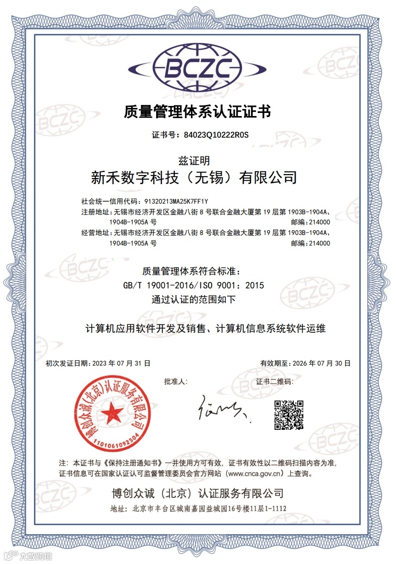 此次顺利获得ISO三项体系认证,印证了新禾在生态环境领域“SaaS软件服务”及“环境咨询服务”等方面自主研发、销售和运营的实力,凸显了新禾“客户价值”与“员工价值”并重的经营理念。