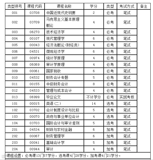 课程设置:必考课12门61学分,选考课8门48学分,加考课3门16学分。 |