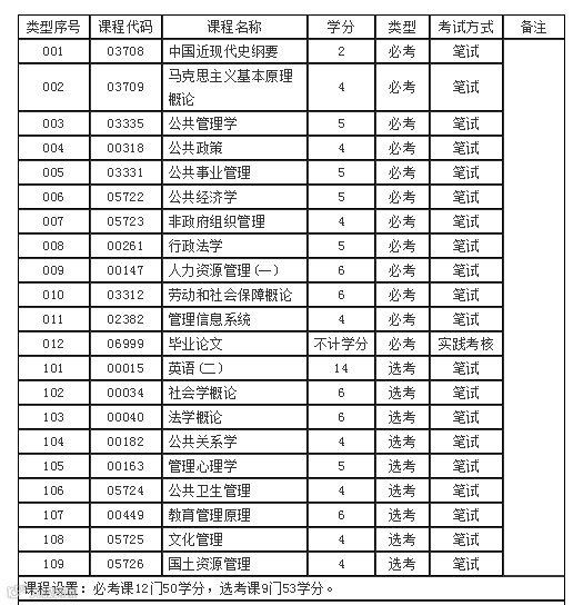 1.101至111课程中须选考不少于24学分。前置学历为高等教育自学考试行政管理(专业建设主考学校为华南师范大学)专科毕业生不得选考“行政法学”(课程代码00261)。