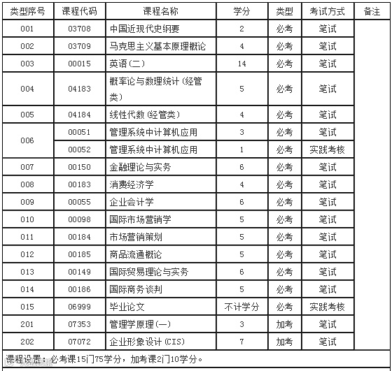 1.经济类、管理类专业的专科(或以上)毕业生可直接报考本专业,非经济类、管理类专业专科(或以上)毕业生报考本专业须加考“管理学原理(一)”和“企业形象设计(CIS)”两门课程。