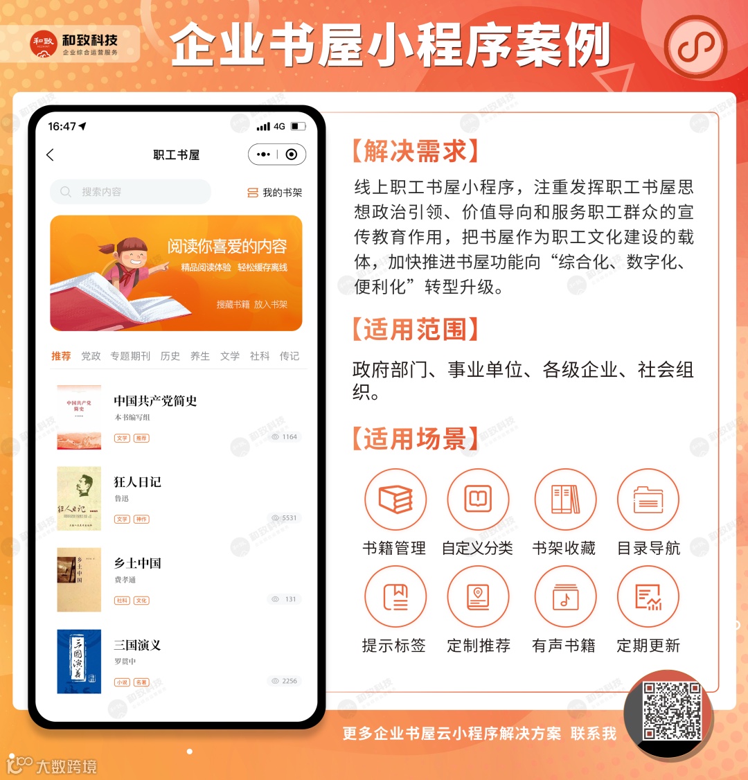 线上职工书屋小程序,注重发挥职工书屋思想政治引领、价值导向和服务职工群众的宣传教育作用,把书屋作为职工文化建设的载体,加快推进书屋功能向“综合化、数字化、便利化”转型升级。