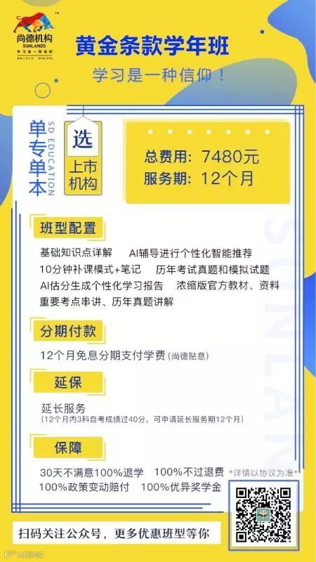 现正值8月报考季,我们为了解决你的选择困难症,最大程度的减少你的学业负担,首次推出史上性价比最高的新班型——黄金条款学年班