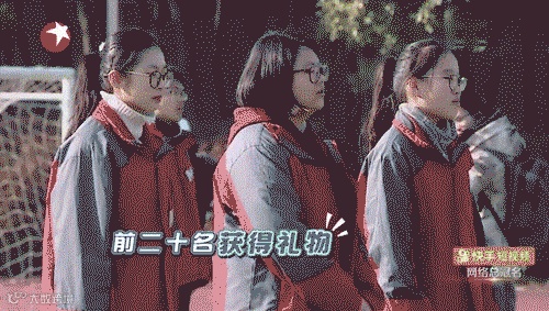 后来节目组让他们回到原点,让他们在同一个起跑线上往终点方向跑,前20名跑到终点的就获得礼物。