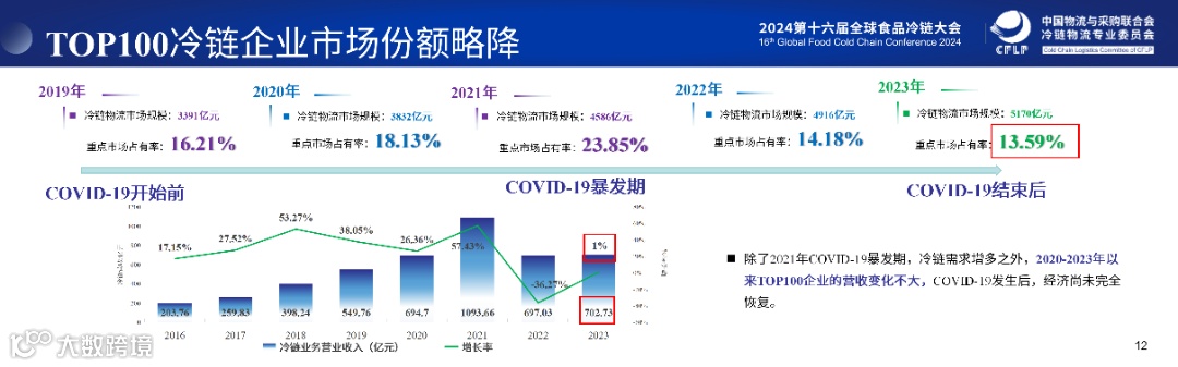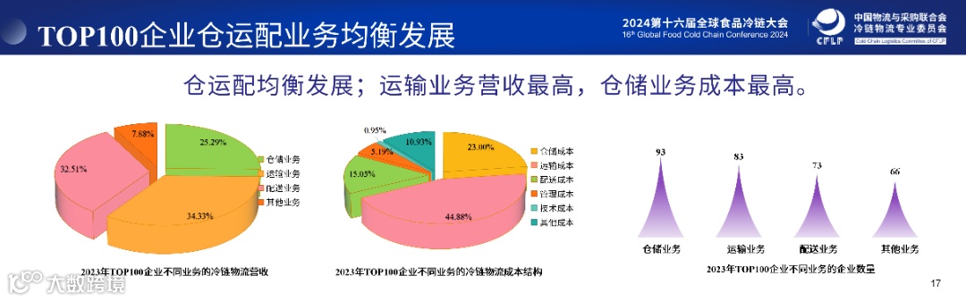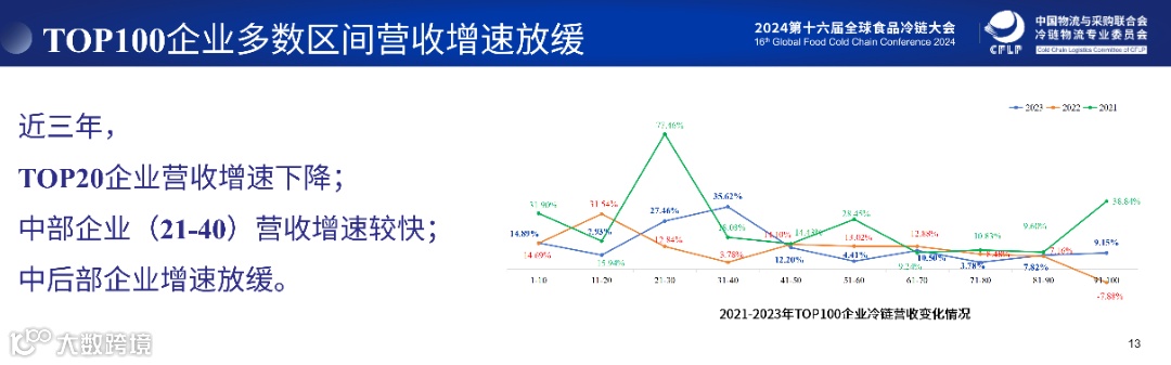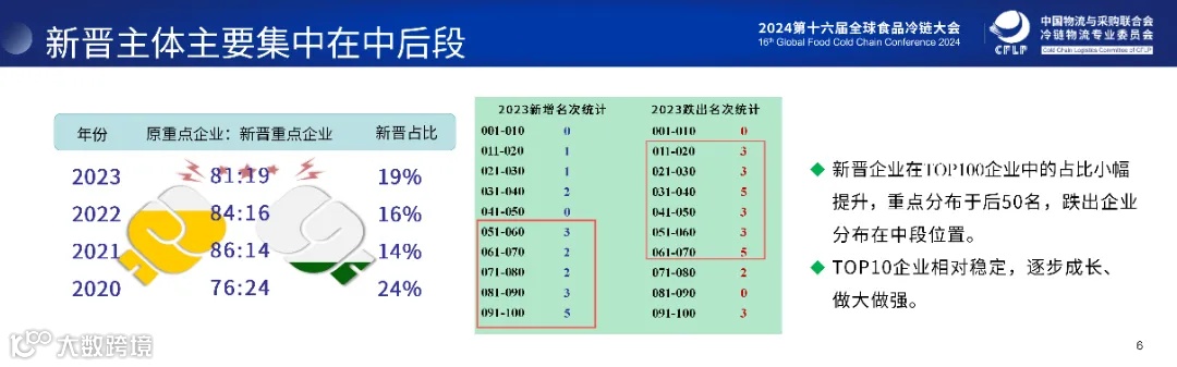 在6月27-30日南昌举办的“2024第十六届全球食品冷链大会”上,2023冷链物流TOP100企业正式发布。