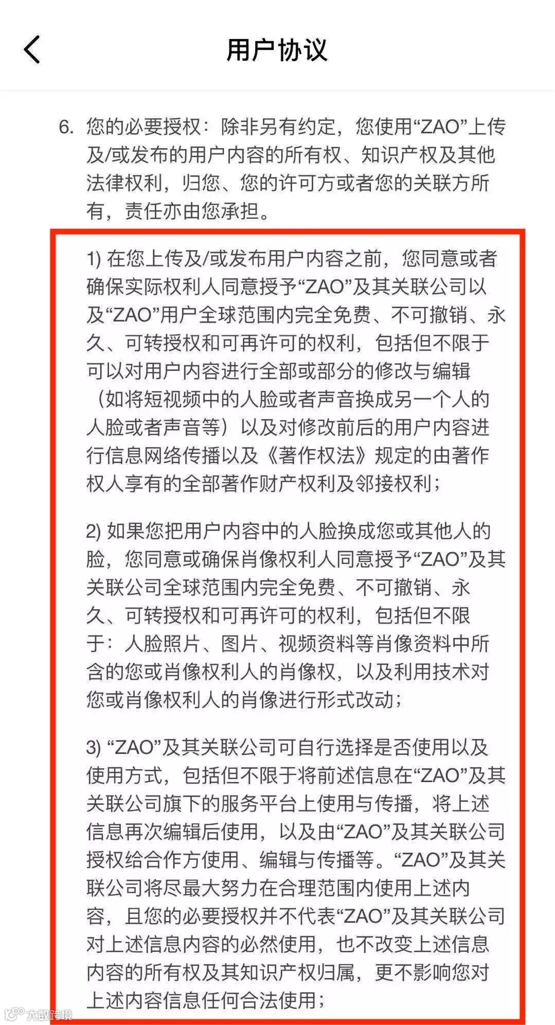 用户上传人脸照片后,ZAO会对人物形象进行非公众人物验证和肖像权认证,认证之后换脸视频才能分享到社交平台。意味着用户必须同意默认的用户协议,一旦上传就无法再删除照片,涉嫌过度收集用户个人信息问题遭质疑。