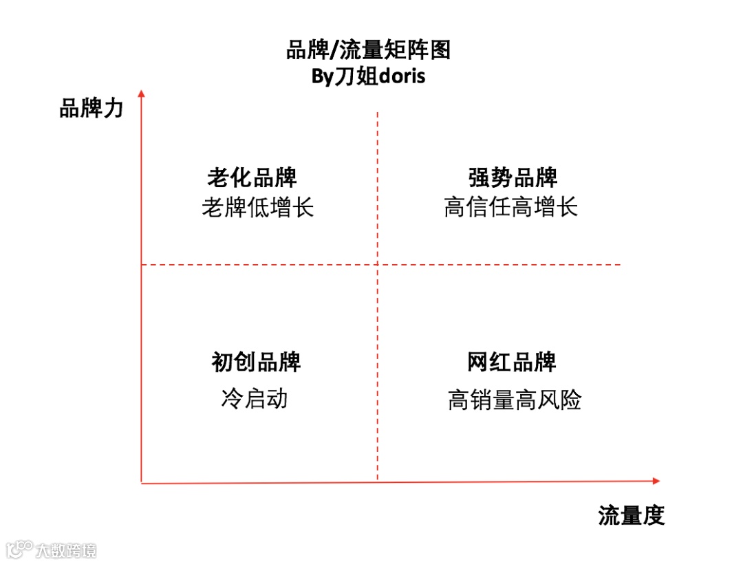 高品牌低流量,往往是老化品牌,需要寻找新消费者流量。例如大宝。