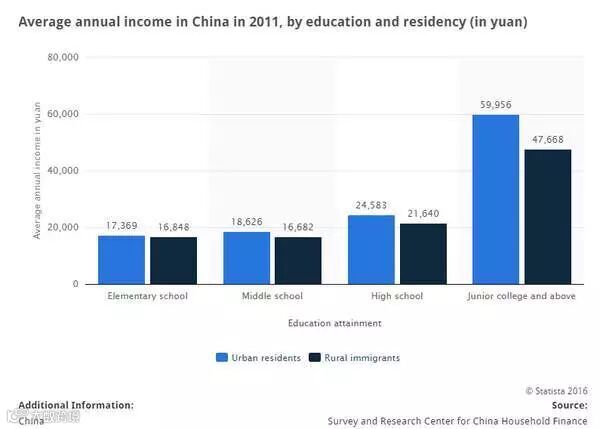 最高学历群体比高中学历群体的平均收入高整整六倍,且每个教育阶层都显示出明显的级差,这个差距称不称得上天壤云泥?