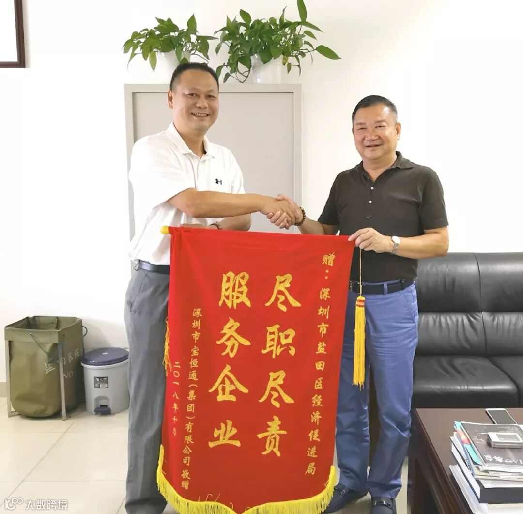 集团董事长肖德军为答谢盐田区经济促进局,赠送锦旗及感谢信,对其尽职尽责服务企业表示衷心感谢。