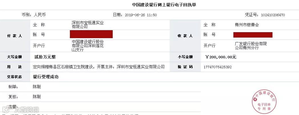 ▲捐款电子回执单