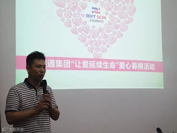 活动在集团行政人事中心经理张良的介绍中,正式拉开帷幕。随后,集团董事长肖德军先生上台倡议说道:人有旦夕祸福,月有阴晴圆缺。只要人人都献出一点爱,世界将变成温暖的人间,希望全体员工发扬“一方有难、八方支援”的中华传统美德,少抽一包烟,少喝一次酒,为处于极度困难边缘的“宝恒通家人”献出一点心意。齐心协力帮助刘志祥度过难关,用爱心为其母亲延续生命。并带头捐款。让在场所有同事为之动容,掌声阵阵。