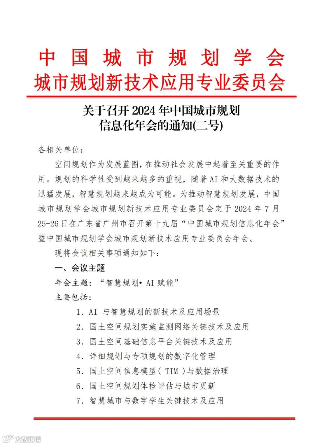 关于召开2024年中国城市规划信息化年会的通知(二号)