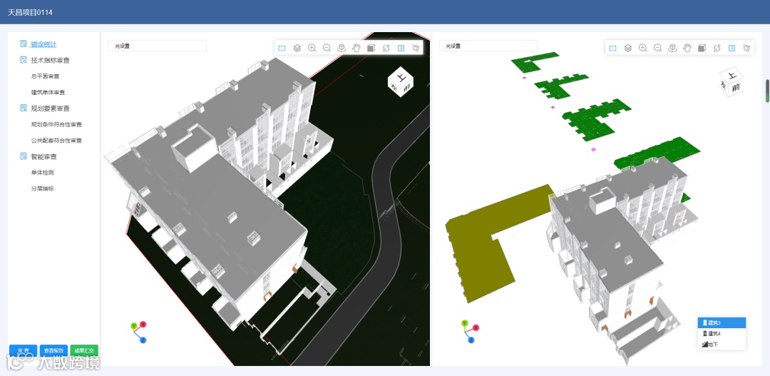 BIM微观审查是从定性和定量角度对规划报建方案进行审查,审查结果自动形成审查报告。报告可在设计端打开与定位,实现审查结果与设计内容的交互。