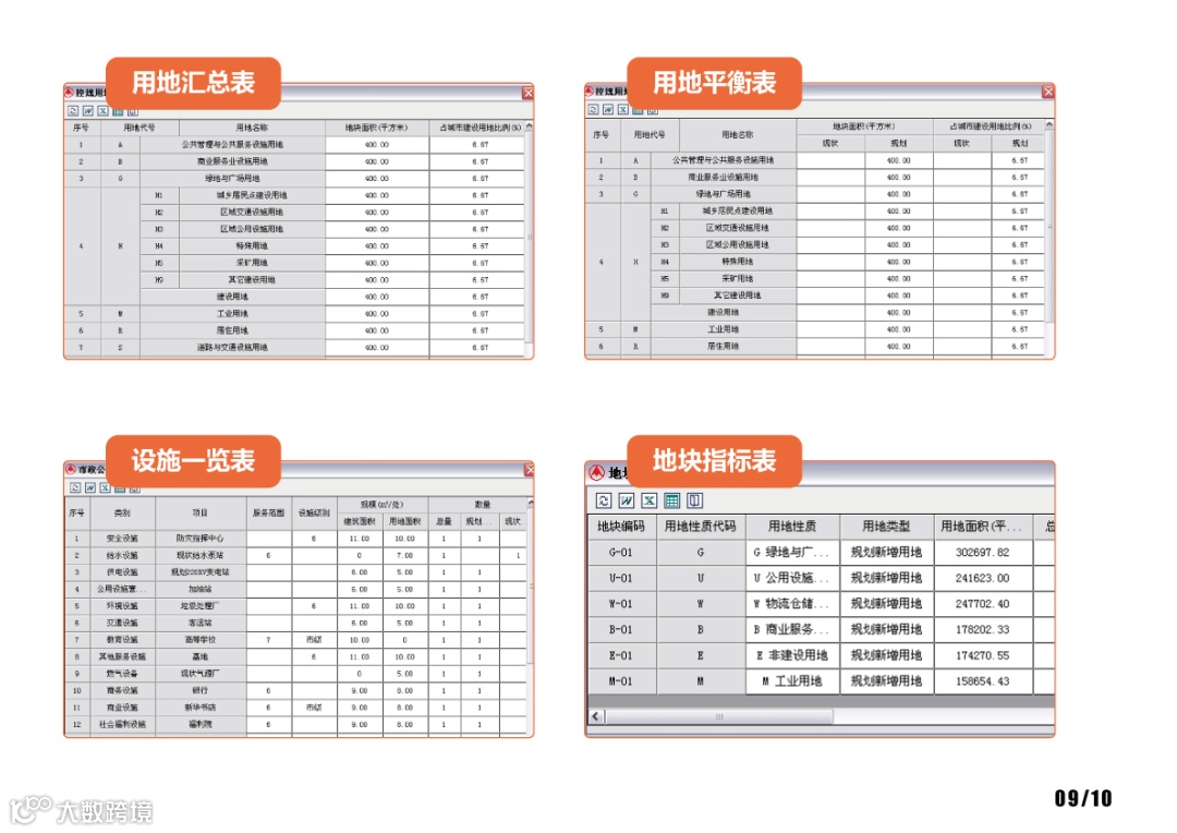 通过对录入到系统的各类规范性文件进行计算机语言转译,对报建文件自动进行相关规则自动关联,并自动提取属性和关键数据,进行合理性审查。审查结果包含用地汇总统计表、用地平衡统计表、设施配套公建统计表以及地块指标统计表等各类统计汇总表。