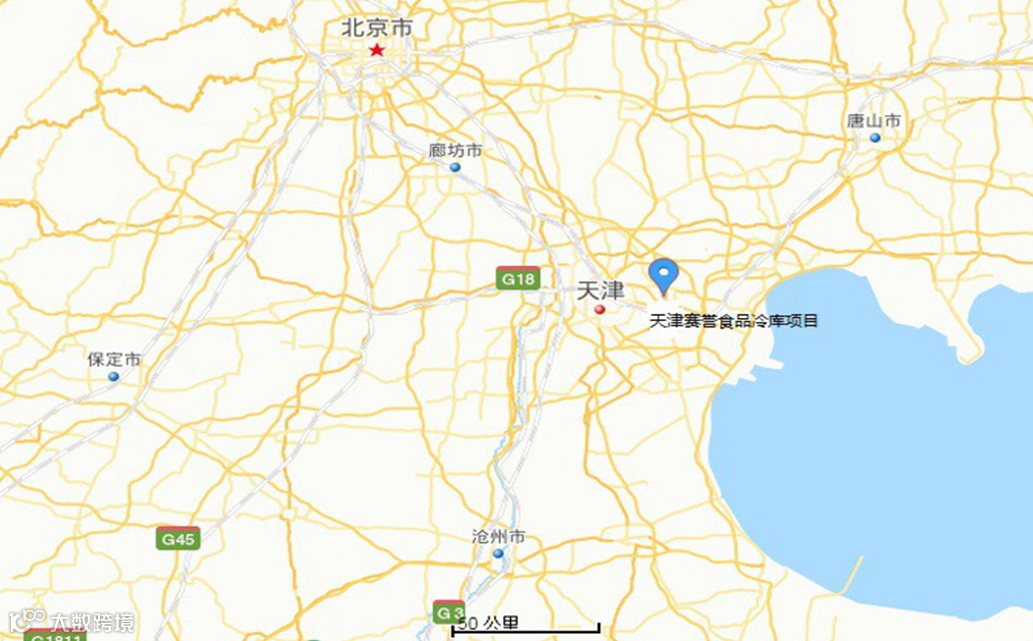 赛誉食品冷库项目坐落在天津自贸试验区(空港经济 区)中心大道与环河南路交口。位于天津市东南部,西南侧紧邻北方航空货运中心——天津滨海国际机场。靠近京沪高速铁路规划线和京山铁路北环线,比邻京津塘、津 滨、荣乌高速公路及津汉城市快速干道、杨北公路以及规划的津汕高速公路。据北京市110公里,距天津市中心区仅10公里,距天津港保税区、天津港约30公里;空运、海运、公路、铁路交通条件优越。