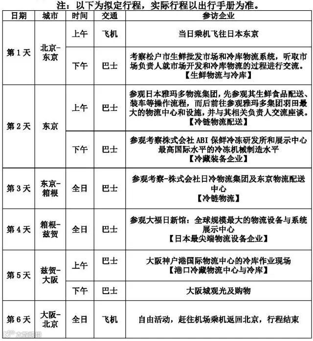 我国冷链物流产业经过多年的发展培育,从国家层面、市场需求、社会资本等方面把冷链物流行业推向了产业风口,迎来了最好的发展良机,根据行业发展规划,我国将努力提高冷链流通率和冷藏运输率,加快节能环保的各项新型冷链物流技术的研发与引进,大力发展冷链物流行业。为此我国冷链物流行业的从业者急需借鉴发达国家的冷链物流管理经验与技术。尤其临邦日本是我国冷链物流企业家学习借鉴的最好对象,为了给我国冷链物流行业的相关单位提供赴日深入学习交流和参观考察的机会,我们计划于2017年4月9-14日进行为期6天的“中国冷链物流企业赴日商务考察”活动,并充分利用以往考察交流的资源基础,为大家搭建一个中日冷链物流企业交流洽谈、考察合作的良好平台,望相关企业积极踊跃报名参加。