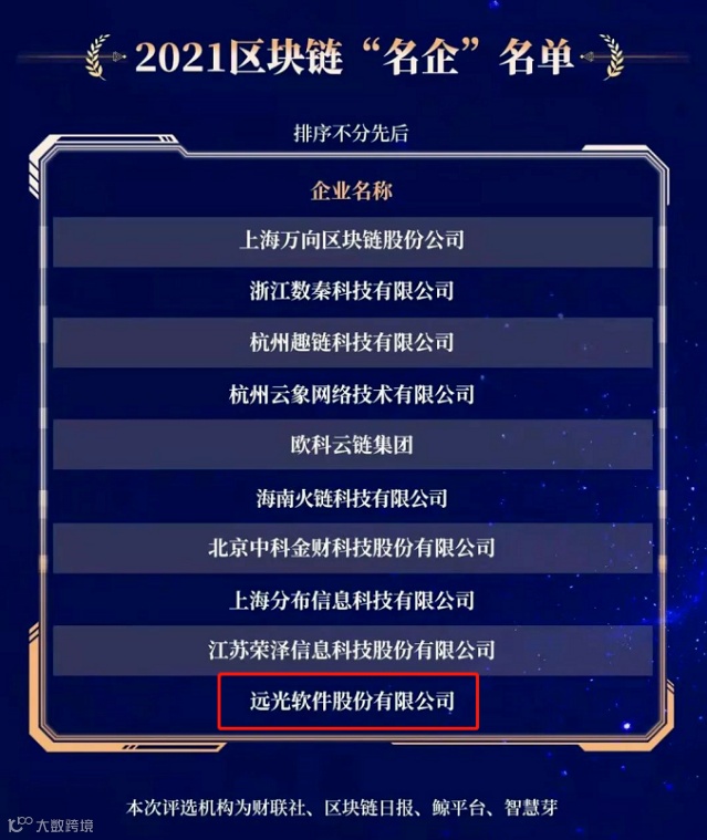近日,由财联社主办,中国金融信息中心、科创板日报联合主办的“2021年首届中国数字金融峰会暨区块链创新论坛”在上海成功举办。此次峰会聚焦数字货币技术、区块链技术和应用、元宇宙等热点话题,旨在探讨金融科技、产业区块链建设以及应用路径,全力推动我国数字经济高质量发展。大会现场同时揭晓“2021区块链名品”与“2021区块链名企”两大重量级榜单,远光软件凭借在区块链领域的创新技术能力及应用成果成功入选“2021区块链名企”榜单。