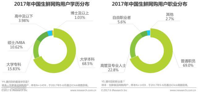 ▌本科毕业的普通职员为线上生鲜食品的主要消费人群