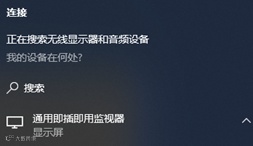 注意看图片底部“连接到无线显示器”,这个选项,点击这里电脑会搜索同网络中的无线投屏设备(电视机、网络电视盒、无线投屏设备)等,可以通过无线网络进行投屏。