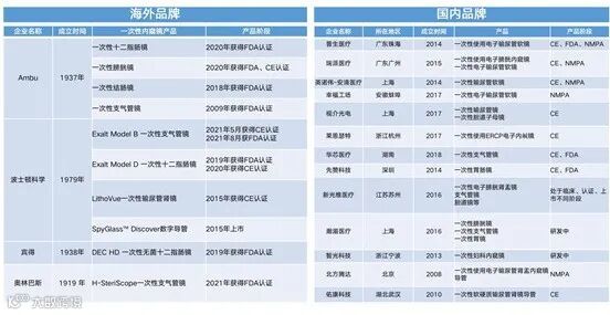 一次性内窥镜的专用性、低成本、耗材化等优势所释放的巨大商业潜能,使得外资企业和国内本土企业纷纷抢注。不同于传统内窥镜,一次性内窥镜在设计理念、量产均一性和成本控制上与复用式内窥镜存在较大差异,也使老牌外资企业在新兴市场的探索中不具备明显的领先优势,业界鳌头奥林巴斯上市的一次性支气管镜产品也为代理国产品牌产品。国产企业已呈现百舸争流态势,据不完全统计,已有13家一次性内窥镜企业。