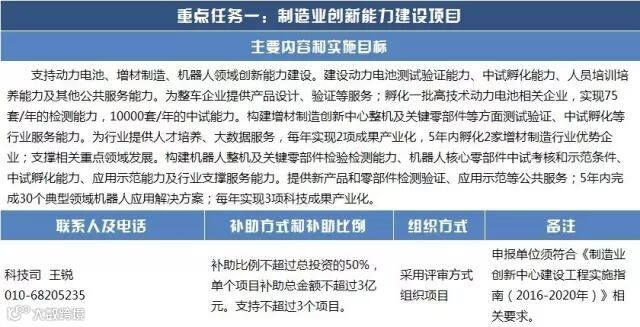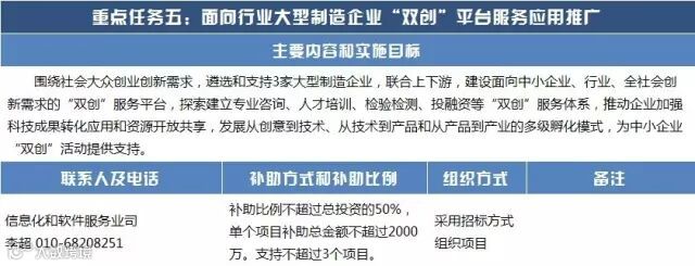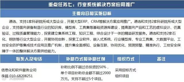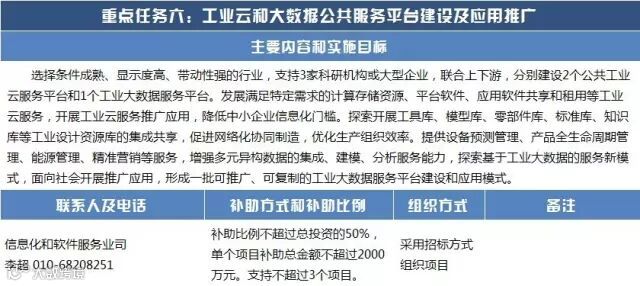 围绕《中国制造2025》年度任务和工业和信息化部年度中心工作,主要支持产业共性技术公共服务平台及设施、重点领域关键问题解决方案两个方面共18个重点任务(详见附件1)。