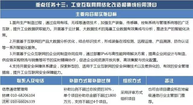 围绕重点行业、关键领域技术基础、标准制定和咨询评估公共服务平台建设,重点支持制造业重点领域创新能力建设,“制造业+互联网”公共平台建设,工业互联网技术架构构建和验证、监控能力建设,以及全领域生产管理和质量管控体系标准化建设。