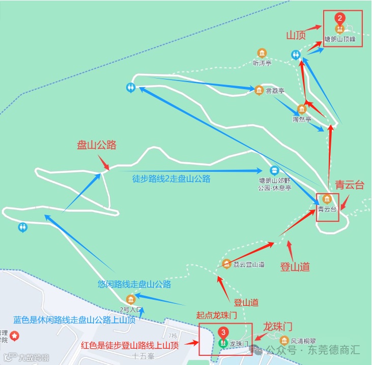 总结,塘朗山徒步路线,轻松路线,塘朗山公园龙珠门为起点,终点仍然是塘朗山公园龙珠门。虐驴路线,塘朗山公园龙珠门为起点,终点是梅林水库。