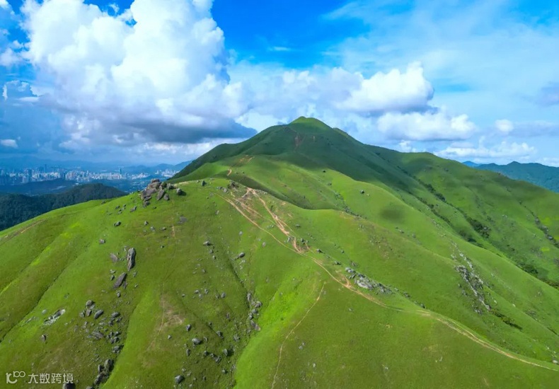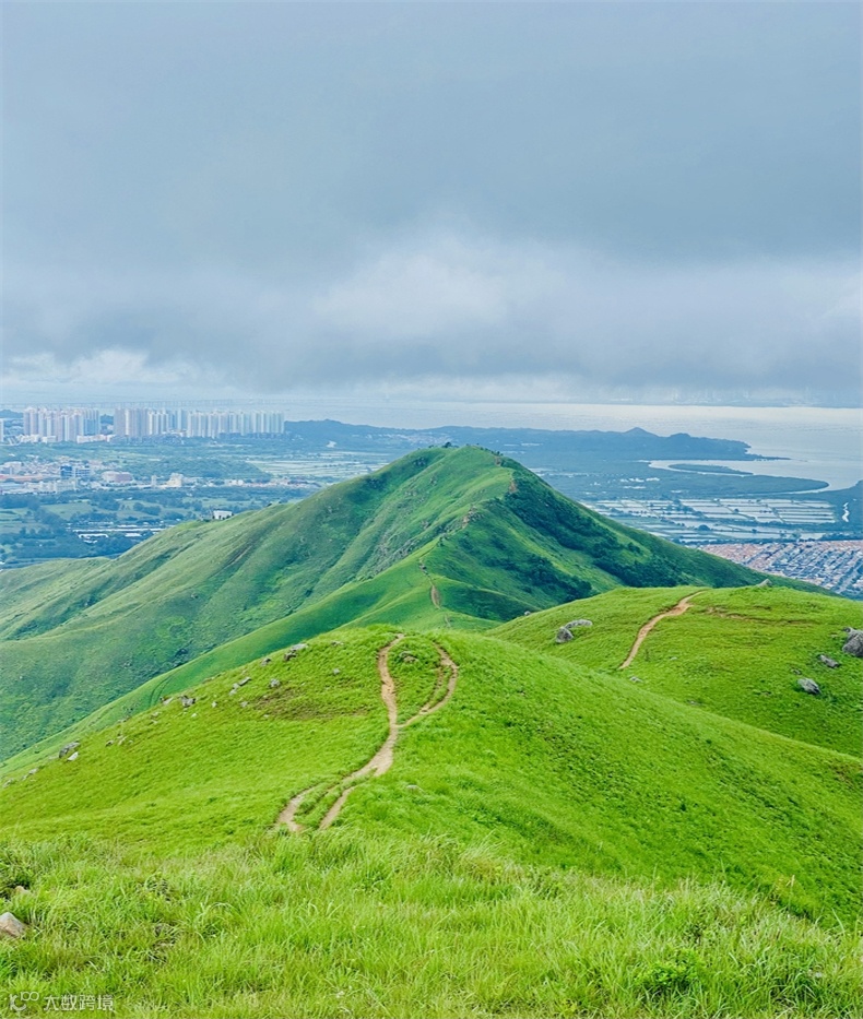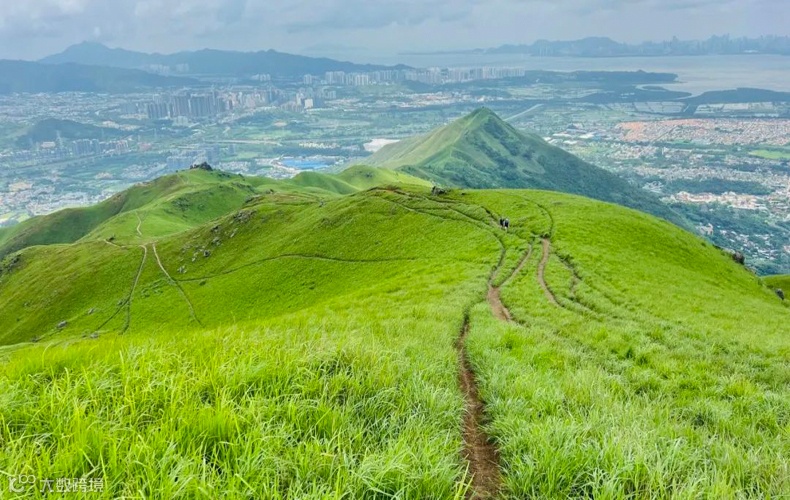鸡公岭山貌极为突出,有“港版小武功山,港版富士山”之称,山脊向四方伸延,气势非凡,其山峦的起伏于光线下极富层次,引人注目,山坡平坦,视野开阔,沿途草坪如地毯般铺盖山岭。