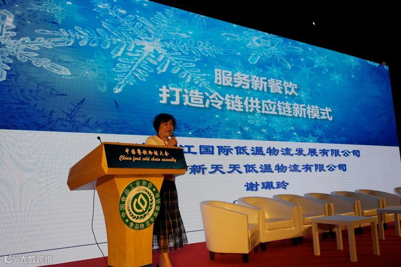上海锦江国际低温物流有限公司副总经理、新天天大众冷链物有限公司总经理谢珮玲女士就“服务新餐饮,打造冷链物流新模式”展开精彩的演讲,通过打造全程供应链,为客户提供一站式物流服务。掌控商品冷链的所有环节,控制食品安全。——全国性多温层仓储、干线及城市配送、代理采购销售、流通加工、供应链金融等的一站式供应链服务,成为了众多餐饮客户的迫切需求为了解决餐饮客户的供应链痛点,新天天冷链设立了供应链部门,为餐饮客户提供食材选品、进口清关、代理采购定向销售、储存、分拣、干线及配送等服务,为客户提供仓配一体化、多样化与个性化的物流服务。