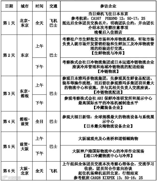相比发达国家,我国的冷链物流发展时间较短,虽然取得了一定的成就,但全国冷链物流发展不均衡、模式照搬现象严重、缺乏专业的第三方冷链物流企业、行业标准和监管还需规范、供应链上下游整合不紧密、冷链物流配套基础设施建设仍处于初级阶段等问题仍很突出;面对新的经济形势和市场需求的激增,我国冷链物流行业的从业者急需借鉴发达国家的冷链物流管理经验与技术。尤其临邦日本是我国冷链物流企业家学习借鉴的较好对象,为了给我国冷链物流行业的相关单位提供再次赴日深入学习交流和参观考察的机会,我们计划于2018年4月22-27日进行为期6天的“中国冷链物流企业赴日商务考察”活动,并充分利用以往考察交流的资源基础,为大家搭建一个中日冷链物流企业交流洽谈、考察合作的良好平台,望相关企业积极踊跃报名参加。