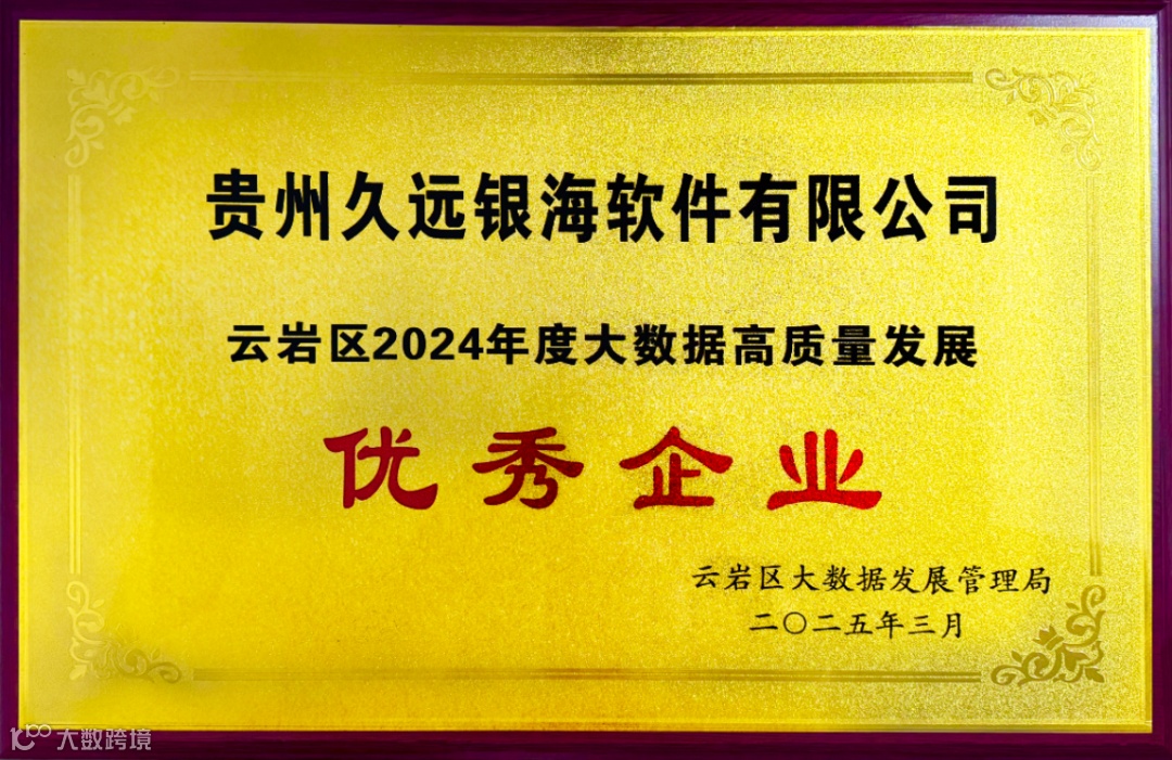 “云岩区2024年度大数据高质量发展优秀企业”奖牌