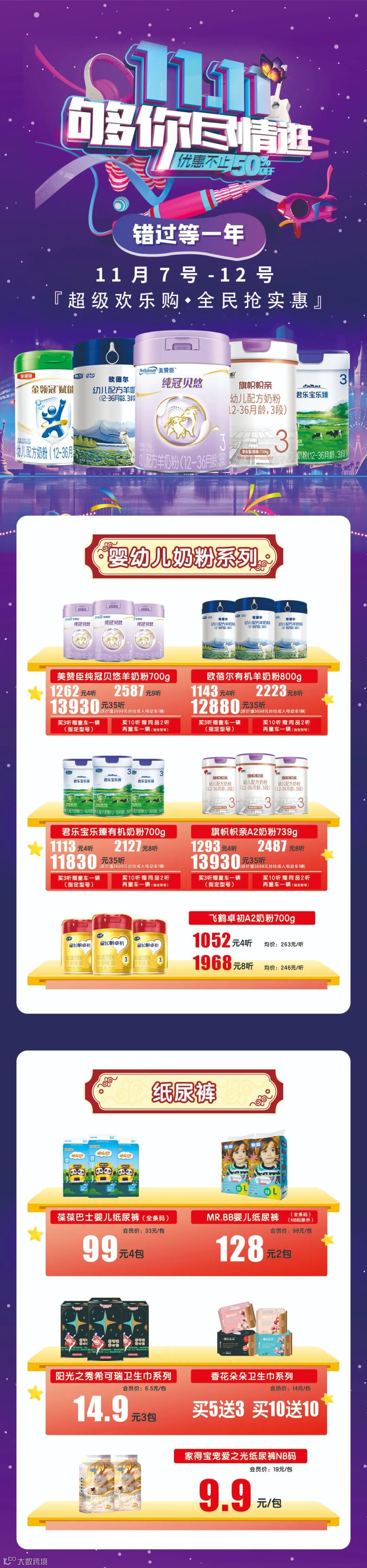 双11超级欢乐购!限时抢购,奶粉大促,错过今天,再等一年