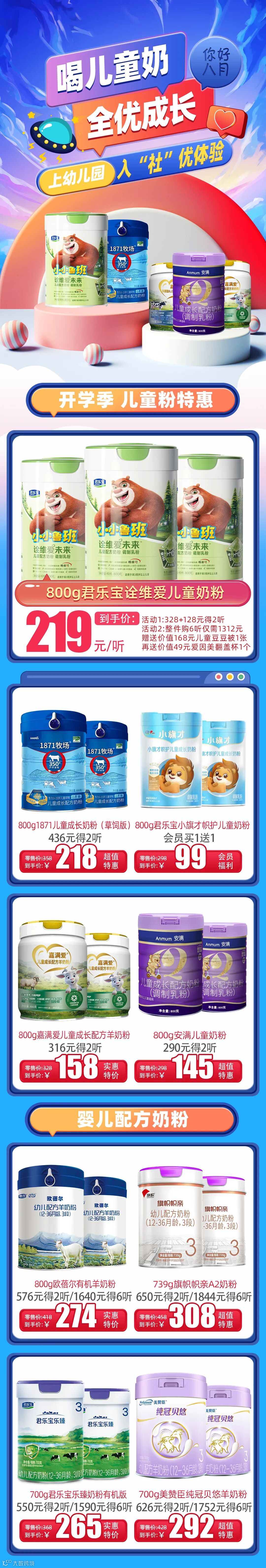 导读:喝儿童奶,全优成长!上幼儿园,入“社”优体验,开学季儿童粉特惠
