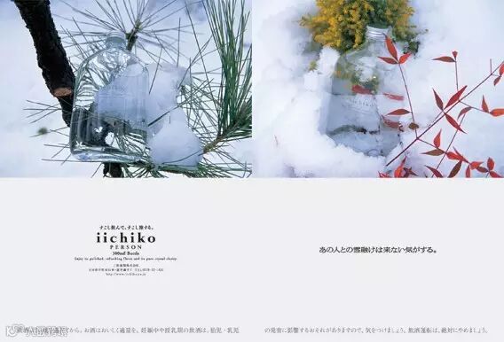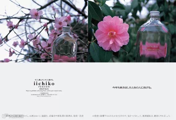 iichiko妙的还不只是海报,就连包装也一水儿的纯净清透,iichiko Person烧酒采用300ml的透明玻璃瓶承装,外形像是我们熟知的CK香水,它也是每月会推出一张海报,每张均以花朵植物为背景,简直就让人以为是香水广告。而文案,则像是酒后淡淡的倾诉,与画面相得益彰。