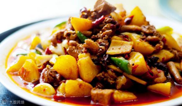 9. 土豆去皮切块,鸡肉炖至八成熟,加入适量盐调味,将土豆块倒入锅中翻炒均匀