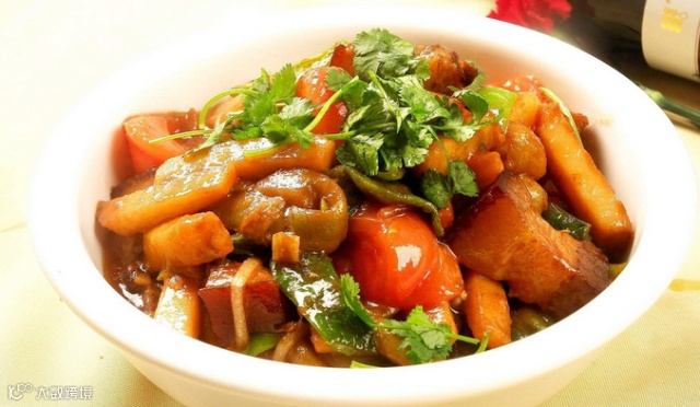 10. 继续炖15分钟左右,等土豆也炖熟了,加入切块的青红椒翻炒均匀即可出锅