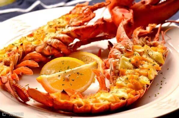 3、柠檬对切开,把柠檬汁挤在龙虾上