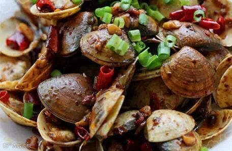 1、花蛤洗净外壳,用淡盐水浸泡,使其吐净泥沙