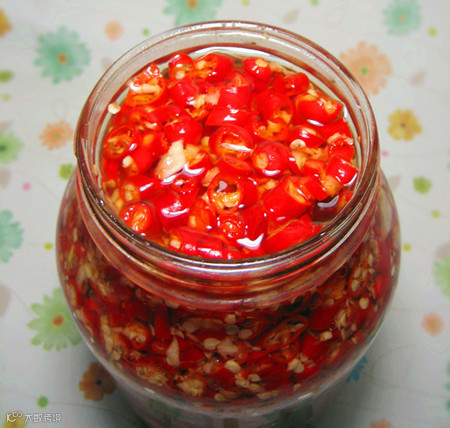 11)装瓶最好只装八分满,然后倒入食用油,把辣椒淹没在里面,一般这样腌制最少要15-20天以上才可食用。