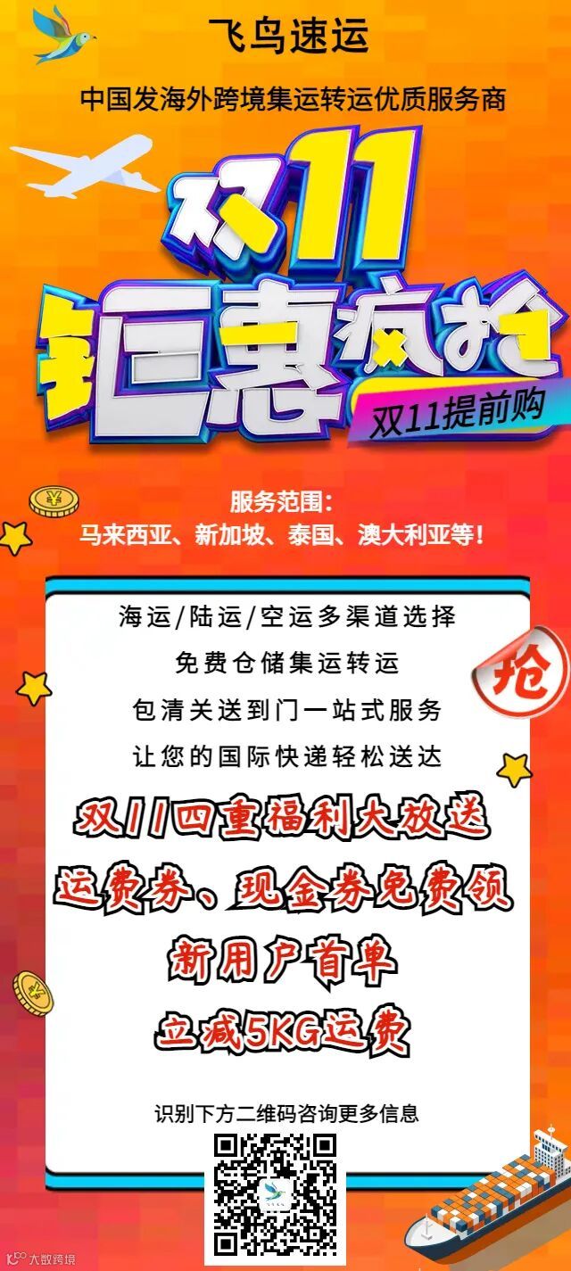 注:仅限新用户首单海运订单,偏远地区除外!澳洲海运仅限普货订单,税费,超长超重,超品名费等附加费实报实销!本活动不可与活动1、活动2、叠加使用!