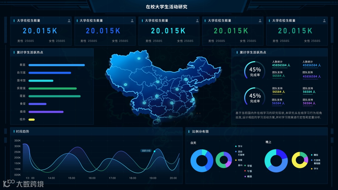 商务风是偏严谨的风格,在数据分析表达中会给人传递一种正式的感觉,商务风中干净利落的色彩搭配,会让数据的展现带有一种专业沉着的气场。