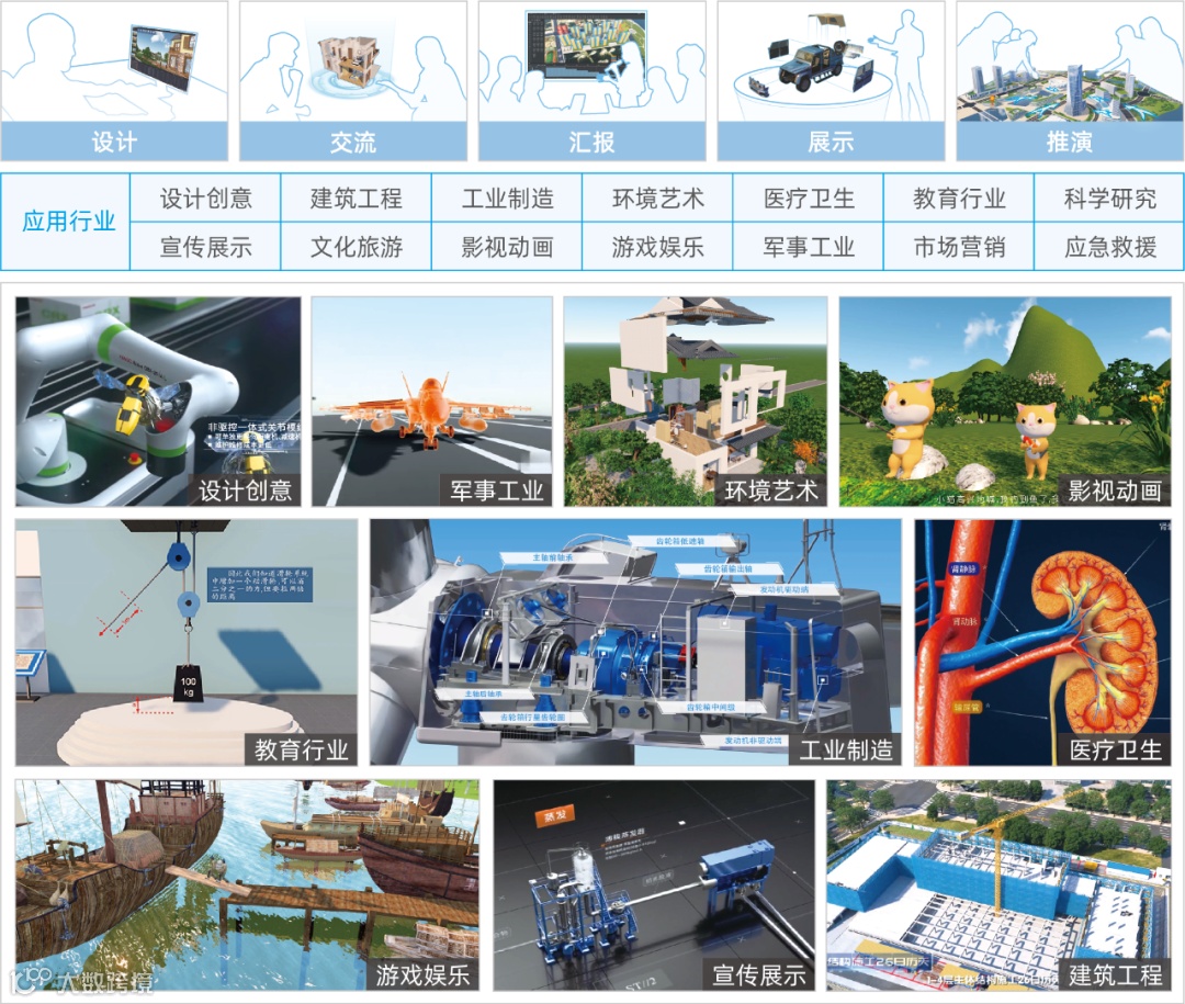 具有灵活建模、顶级渲染、四维情景编排、人工智能和虚拟现实等模块。是目前世界上集成度、易用性、效率、效果等综合性能指标最高的软件产品。拥有自主版权自主创新,一款产品可替代国外多款软件实现虚拟仿真数据生产。极大地降低虚拟仿真成果制作门槛,将大幅度地推动这项技术在各行各业中的普及应用。
