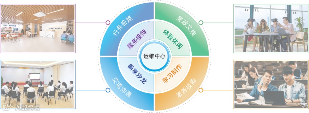 这一区域是学生首次进入时接触的地方,提供各类基础服务与信息指导。配备优雅开敞空间、装备、水吧等,由大学生轮流值守负责接待,处理日常行务和答疑。