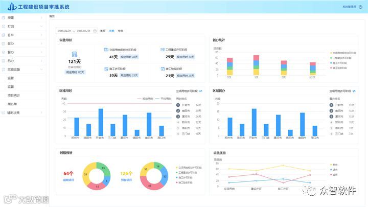 自动统计各事项审批时效,按照项目阶段或者部门进行综合展示,依托多维度的查询分析,实现各业务主题分类展示,深度挖掘数据,为监管部门、决策层提供数据支撑。
